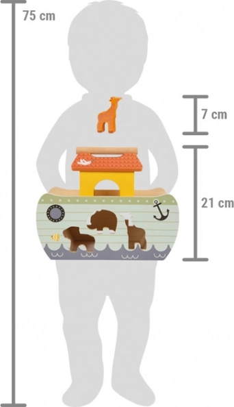 Noemova Archa Safari je robustná drevená loď, ktorá prináša nezabudnuteľné dobrodružstvo do každej detskej izby. Loď má madlo pre jednoduché prenášanie a odnímateľné veko, čo umožňuje jednoduchú manipuláciu s figúrkami vo vnútri. Obsahuje 15 drevených figúrok, vrátane 6 párov zvieratiek, 2 ľudských postáv a rebríka, ktoré dokonale sedia do príslušných otvorov lode.