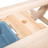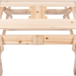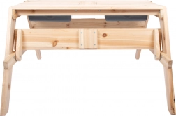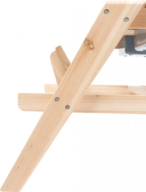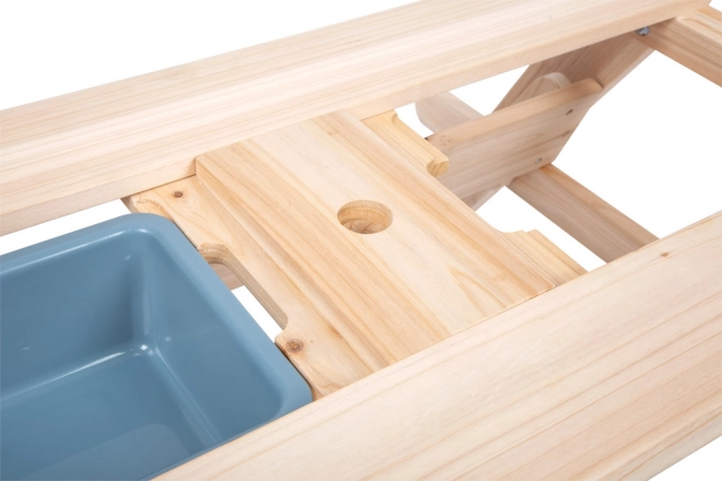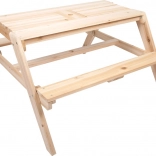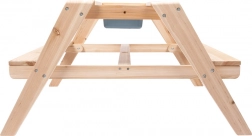 Drevený stôl slúži ako piknikový stôl aj hracia plocha s vaničkami na piesok alebo vodu.