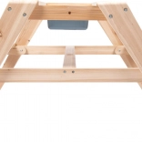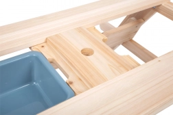 Detský drevený stôl 2 v 1 je ideálnym doplnkom pre záhradu, terasu alebo balkón, kde si deti môžu užívať vonkajšie hry. Stôl je vyrobený z masívneho dreva odolného voči poveternostným vplyvom, čo zaisťuje dlhú životnosť. Má dve odnímateľné plastové vaničky s objemom 3 litre, ktoré sú vhodné pre miešanie materiálov alebo uskladnenie hračiek do piesku.