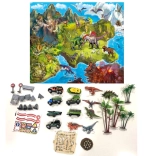 Herný set podporuje kreativitu, interaktívne a vzdelávacie hranie s realistickými dinosaurami a mapou.