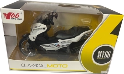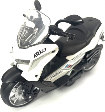 Objavte kúzlo malého, ale detailne spracovaného modelu motorky RX120, ktorý je skvelý ako pre zberateľov, tak i pre deti na hranie. Vďaka svojim reálnym prvkom vyzerá ako skutočný motocykel: od sedla, cez riadidlá, až po pohyblivé kolesá.