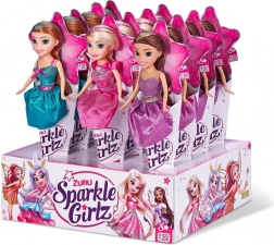 Veľké balenie pre radosť: displej s 12 bábikami SPARKLE GIRLZ v darčekovom kornútovom balení. Každá princezná má trblietavé šaty a meria približne 27 cm. Rôzne varianty, bez možnosti výberu konkrétneho modelu. Cena za celý displej (12 ks).