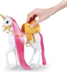 Biely jednorožec so zlatým sedlom a ružovou hrivou aj chvostom pozýva k česaniu a stylingu – ideálne na rozvoj kreativity.