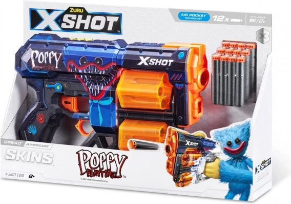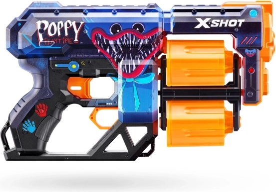 Blaster X-SHOT Skins Dread Jumpscare prináša zábavu na maximum. Ľahká a odolná konštrukcia, výrazná grafika a intuitívne nabíjanie robia z tejto pištole ideálnu voľbu pre rýchle súboje doma aj vonku. Otočný bubon umožní plynulé vystreľovanie šípok po sebe a zaručí tempo, ktoré určujete vy.