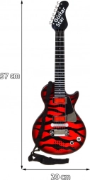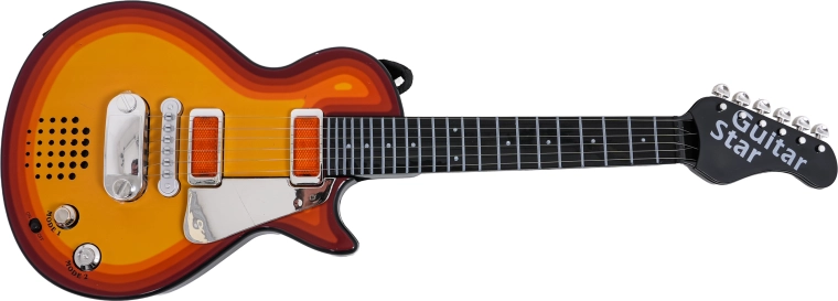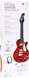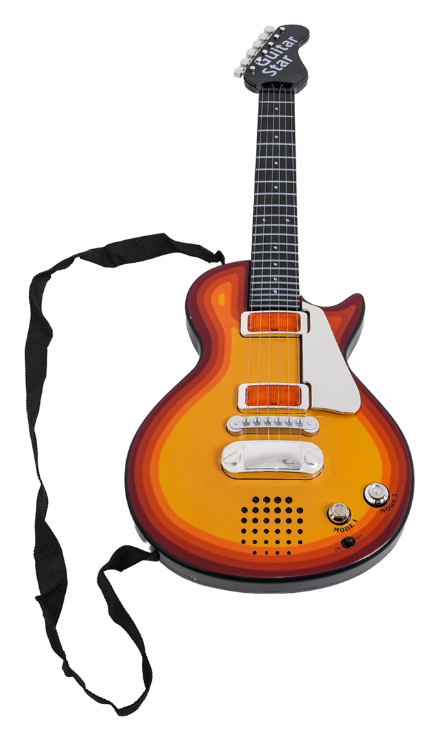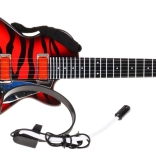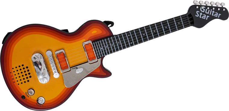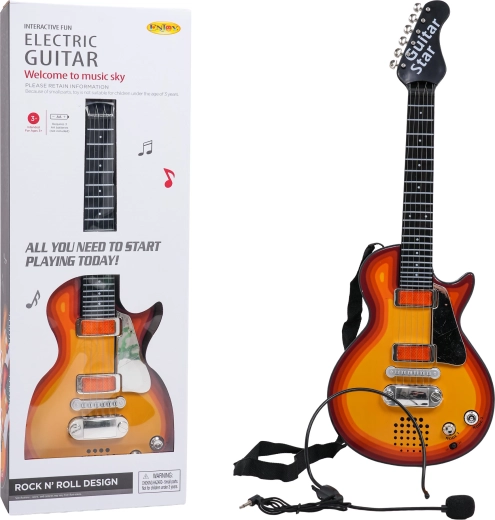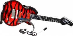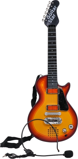 Táto detská elektrická gitara je perfektnou voľbou pre malých rockerov a rockerky. Umožňuje ako prehrávanie hotového rockového podkladu, tak aj vlastné hranie – po dotyku kovových strún gitara vydáva zvuk. Priložený headset so slúchadlami a mikrofónom sa zapája priamo do gitary, takže dieťa môže spievať aj hrať súčasne.