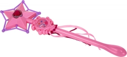 Ružová palička s hviezdičkovým hrotom, obohatená o purpurové koráliky a červený kameň uprostred. Palička má dlhé stuhy a prináša čarovný zážitok do každej hry.