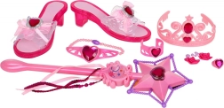 Obsahuje tiaru, náramky, prsteň, náušnice a magickú paličku. Všetky predmety sú zdobené červenými srdcovými šperkami, ideálne na imaginatívnu hru.