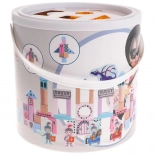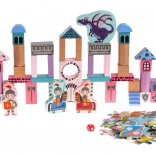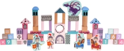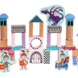 Stavebnica obsahuje bezpečné, pastelovo maľované kocky, ktoré umožňujú deťom postaviť unikátny hrad s rytiermi a drakmi.