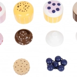 - Modulárna hra: 4 muffiny, 4 polevy, sviečka, sušienka, jahoda, čučoriedka – nekonečné kombinácie chutí.
