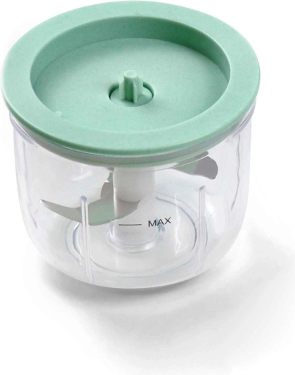 Transparentná nádobka s nožovým systémom ideálna na bylinky, ovocie či menšie porcie zeleniny. Jednoduché použitie a čistenie.