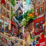 HEYE Puzzle Apokalypsa ponúka zábavné skladanie s 2000 dielikmi od slávneho karikaturistu Loupu, balených v unikátnej trojbokej krabici.