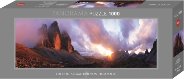 Panoramatické puzzle značky Heye predstavuje úchvatný pohľad na talianske hory Tre Cime. Séria Alexander von Humboldt Edition je známa svojimi kvalitnými a detailnými obrazmi, ktoré sú zábavou pre celú rodinu.
