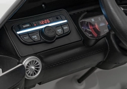 Realistické detaily ako otváracie dvere, štart tlačidlom s efektom naštartovania, svietiace LED svetlá vpredu aj vzadu a prémiové AMG prvky potešia malých vodičov aj ich rodičov. Multimediálny panel ponúka MP3, USB, AUX, Bluetooth a FM rádio, nechýbajú zvuky na volante a ukazovateľ nabitia batérie.