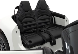 Mercedes‑Benz AMG SL63 pre deti je štýlový kabriolet s dôrazom na bezpečie aj komfort. Vďaka funkcii plynulého rozjazdu, zadným tlmičom a priechodnosti zvýšenej svetlou výškou 10 cm je jazda plynulá a stabilná. Ovládanie je možné ako dieťaťom pedálom a volantom, tak rodičom cez diaľkový ovládač 2,4 GHz s tromi rýchlosťami a okamžitým zastavením.