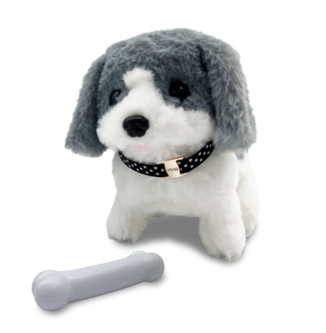 Roztomilý interaktívny psík Punťa v sivobielom prevedení prináša deťom hodiny zábavy a starostlivosti. Chodí, vydáva zvuky a hýbe chvostíkom; v balení navyše nájdete kostičku. Podporuje predstavivosť, jemnú motoriku aj empatiu.