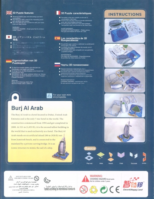 Skladačka 3D puzzle Burj Al Arab zaručene poteší každého milovníka architektúry. Tento detailne prepracovaný 3D model ikonického hotela, známeho ako plachetnica, prináša kúsok Dubaja priamo do vášho domova.