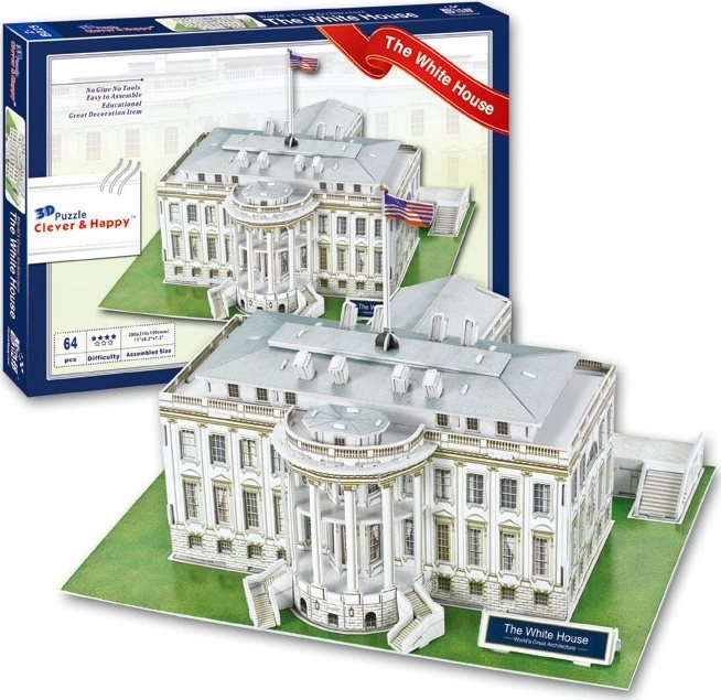 Clever&Happy 3D puzzle Biely dom je dokonalou replikou ikonického sídla prezidenta Spojených štátov, ktorú si môžete zložiť bez použitia nožníc a lepidla. Táto detailná 3D replika prináša náročnú výzvu s obtiažnosťou 4,7 bodu, ktorú si zamilujú všetci nadšenci do architektúry a stavieb.