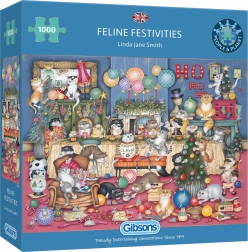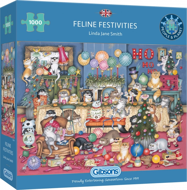 GIBSONS Puzzle Mačacie sviatky rozveselí každého milovníka mačiek. Skladačka obsahuje 1000 dielikov, ktoré spolu tvoria úchvatnú mačaciu scénu.