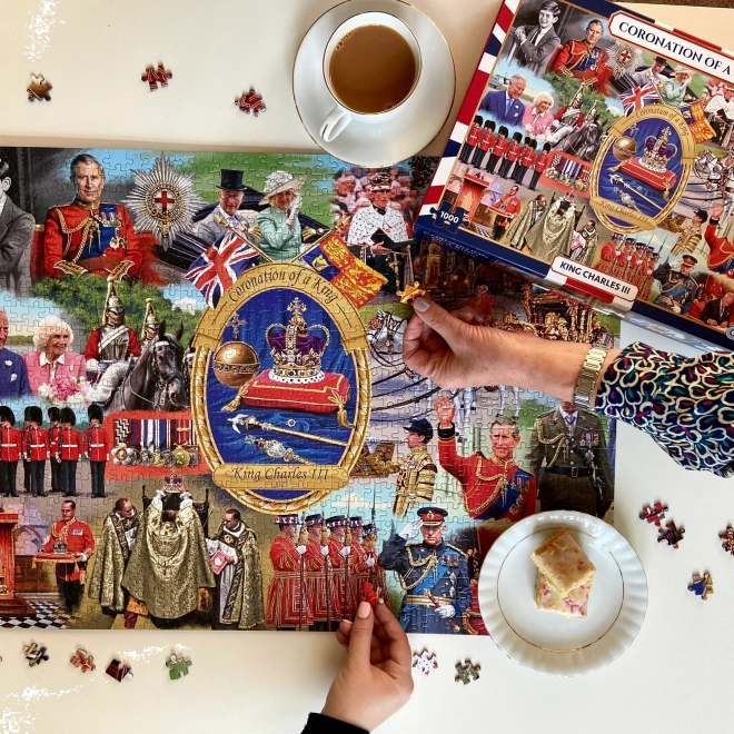 Puzzle Korunovácia kráľa je nádherná skladačka zložená z 1000 dielikov, ktorá oživí historický okamih priamo vo vašej obývačke. Ideálna pre milovníkov histórie a puzzle skladačiek!