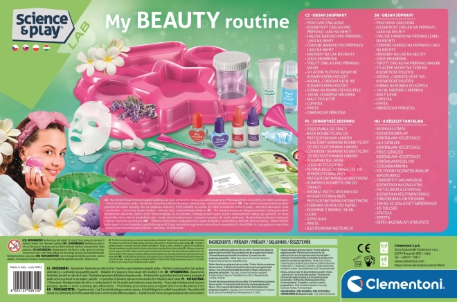 Premeňte svoju kúpeľňu na malé kozmetické štúdio a objavte tajomstvá krásy so sadou CLEMENTONI SCIENCE&PLAY. Pomocou bezpečných surovín si vytvoríte šumivé bomby do kúpeľa, uvoľňujúce pleťové masky aj vlastný farebný lak na nechty. Sada rozvíja zručnosť a kreativitu, podporuje záujem o vedu a využíva biologicky odbúrateľné a netoxické materiály. Súčasťou je aj praktický stojanček na hotové výtvory.