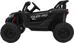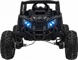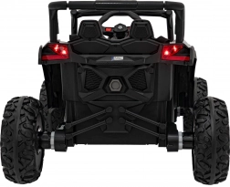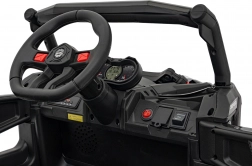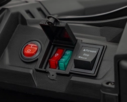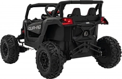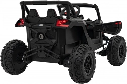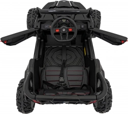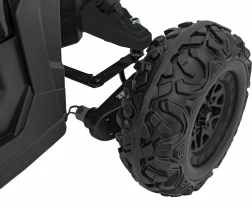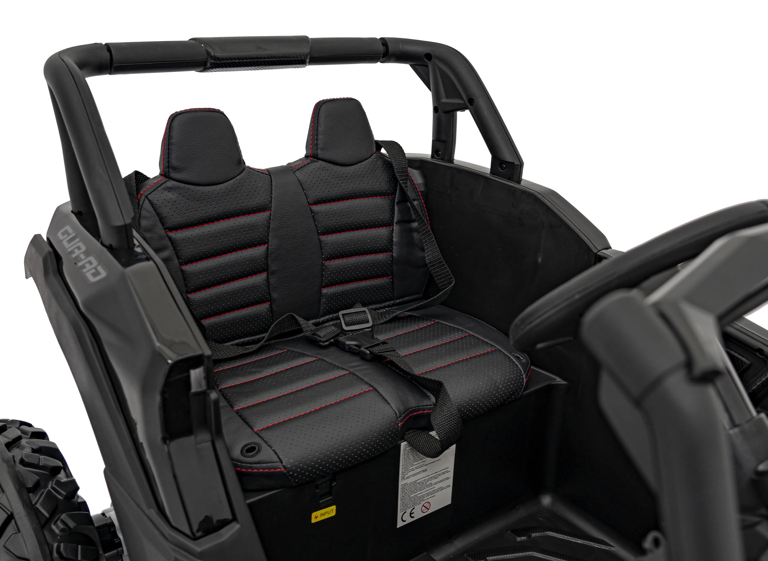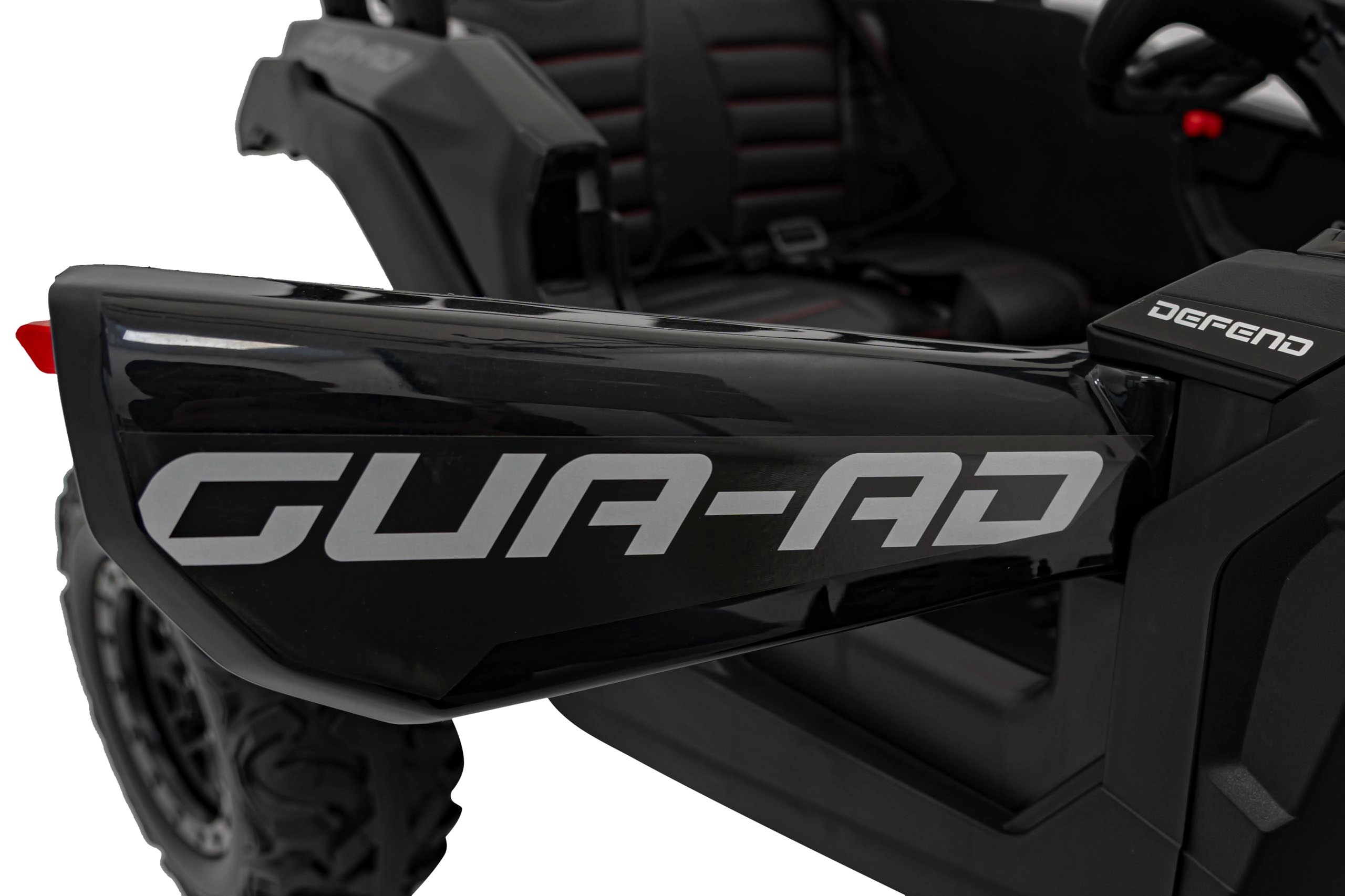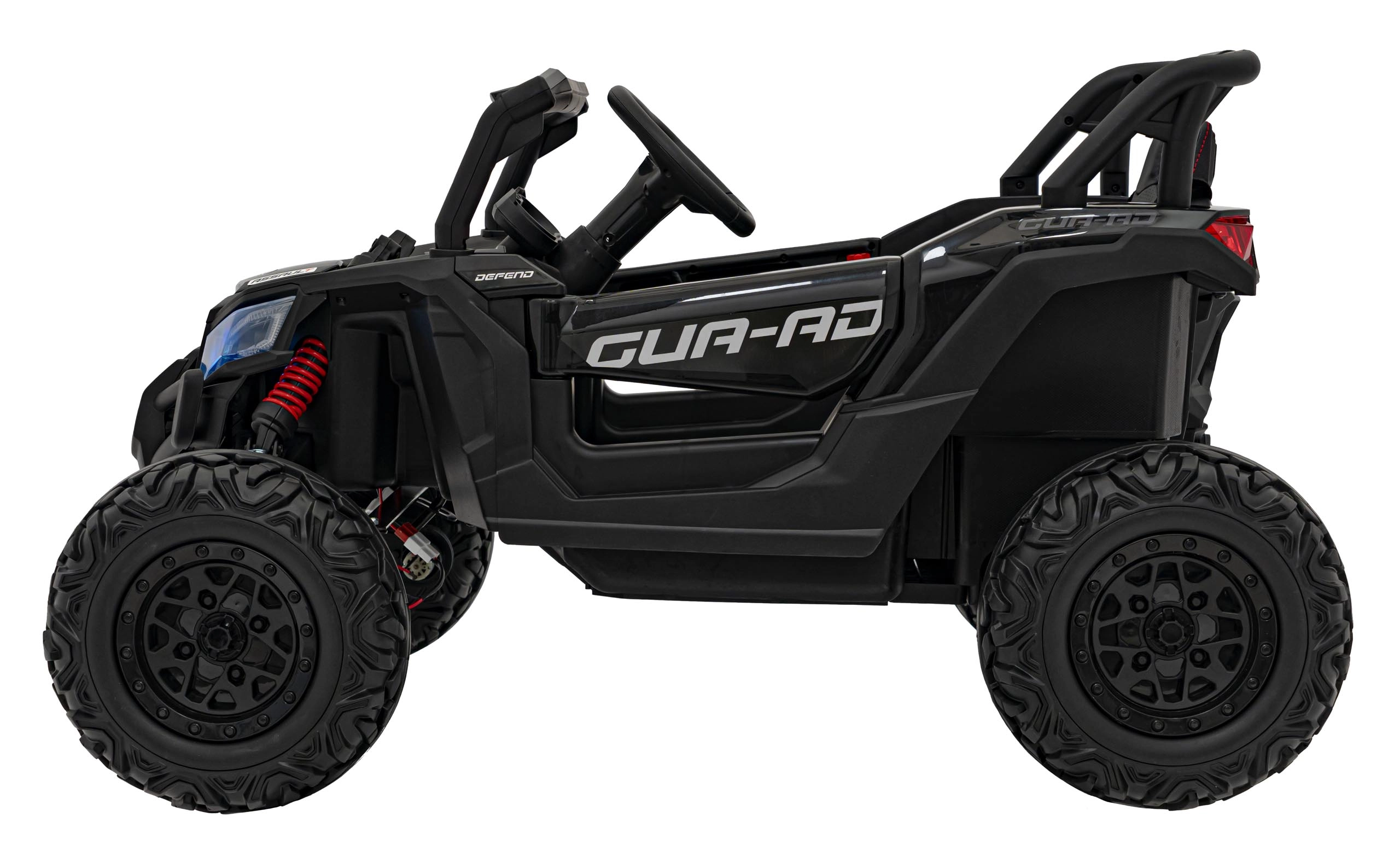 Čierne elektrické autíčko buggy ATV DEFEND kombinuje atraktívny UTV dizajn s istotou stability, trakcie a komfortu. Mäkké EVA kolesá 30×11 cm s viditeľným zadným odpružením skvele tlmia nerovnosti a plynulý štart chráni malých jazdcov pred cuknutím. Sedadlo z ekokože s bezpečnostnými pásmi a otváracie dvere uľahčia nastupovanie a zvýšia bezpečie.