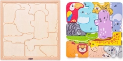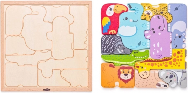 Táto drevená skladačka s exotickými zvieratami je perfektné prvé puzzle pre najmenších. Veľké, farebné dieliky sa ľahko držia a pomáhajú deťom trénovať jemnú motoriku, koordináciu a logické myslenie. Každý dielik má jasné farby a priateľský dizajn, ktoré podporujú vizuálne vnímanie a rozpoznávanie tvarov.