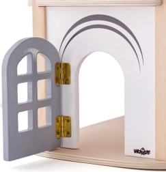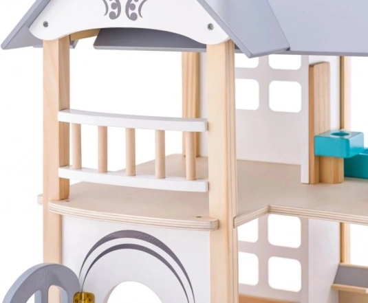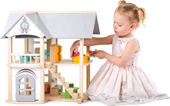 Tento krásne spracovaný domček pre bábiky je ideálnym doplnkom do detskej izby. S rozmermi 53 x 32,5 x 51 cm poskytuje dostatok priestoru na umiestnenie priloženého nábytku. Domček je vyrobený z prírodného dreva s pastelovými akcentmi a je vhodný pre deti od 3 rokov.
