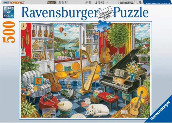 Objavte kvalitné skladanie s puzzle Ravensburger – motív Hudobná miestnosť s 500 dielikmi ponúka relax, tréning koncentrácie a krásny výsledný obraz s rozmerom cca 49 × 36 cm.