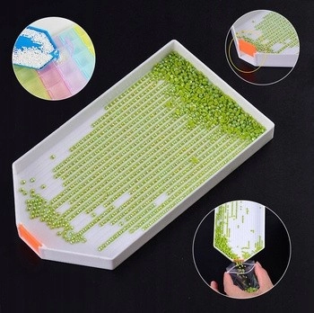 - Plátno s predtlačeným obrázkom a lepivou vrstvou, aplikačné pero, miska, vosk, sada farebných kamienkov, legenda symbolov