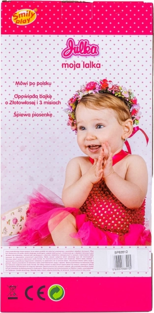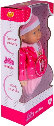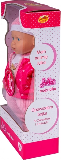 Štýlové zimné oblečenie – čiapka, šál, kombinéza s pruhovanými nohavicami a ružová prešívaná bunda s kapucňou – dodáva bábike realistický vzhľad a nabáda ku kreatívnej, nápaditej hre. Po stlačení bruška Julka hovorí po poľsky, spieva a rozpráva rozprávku o Zlatovláske a troch medveďoch, čo robí hru ešte zábavnejšou.