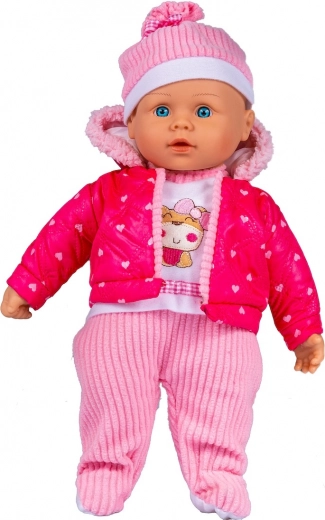 Roztomilá bábika Julka je ideálna parťáčka na hranie aj prechádzky. Po stlačení bruška hovorí po poľsky celými vetami, spieva pesničku a rozpráva rozprávku o Zlatovláske a troch medveďoch. Má mäkké telíčko a štýlový zimný outfit s čiapkou, šálom, pruhovanými nohavicami a ružovou prešívanou bundičkou s kapucňou – ideálne pre rozvoj fantázie, empatie a jemnej motoriky.