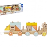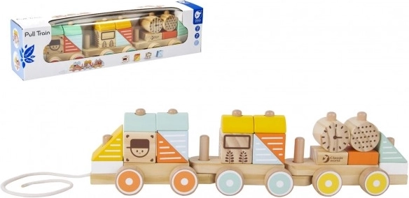 Tento ťahací drevený vláčik ponúka skvelú hračku pre rozvoj zručností detí. Jeho jednotlivé časti sú vyrobené z dreva a môžu byť ľahko vyberané a znovu skladané podľa ľubovôle, čo napomáha rozvoju detskej predstavivosti a koordinácie. Každá časť nákladu je originálna ako tvarovo, tak farebne, čo podporuje rozvoj farebného vnímania.