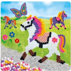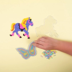 Poskladaj farebné koráliky na priloženú plastovú doštičku. Ako náhle budú všetky koráliky na svojom mieste, požiadaj o pomoc mamu alebo otca, spoločne sa môžete pustiť do zafixovania obrázka.