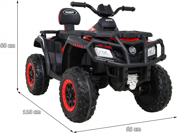 Vďaka pevnej konštrukcii a 4x4 pohonu zvládne štvorkolka nerovný terén a zaistí hodiny bezpečnej zábavy.