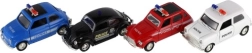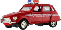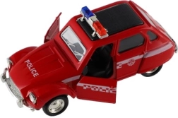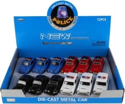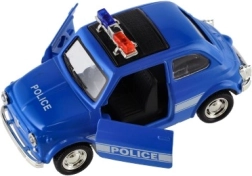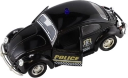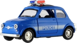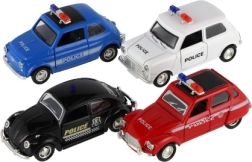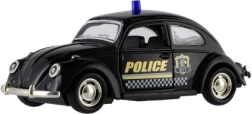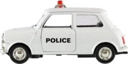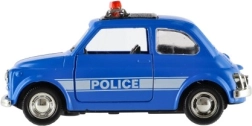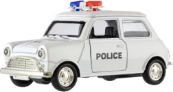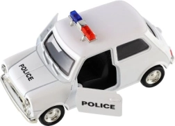Štýlové retro policajné autíčko s dĺžkou 11 cm kombinuje kovové prevedenie a spätný chod pre svižnú jazdu. Má otváracie dvere a svetelné efekty na batérie. Dostupné v 4 druhoch, ideálne pre deti od 3 rokov aj malých zberateľov.