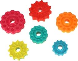 Krúžky so zúbkovaným okrajom kĺžu po zakrútenej tyči, pritom sa otáčajú a vytvárajú pútavý vizuálny efekt aj jemné zvuky. Deti si prirodzene precvičia koordináciu oko–ruka a pochopia princíp príčina–následok.