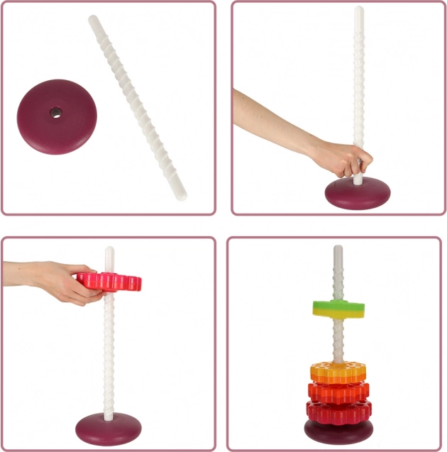 Veľké diely z odolného plastu sa deťom dobre držia a sú bezpečné aj pre najmenších. V balení nájdete 6 krúžkov, tyč a stabilnú základňu – spolu 8 dielov. Jednoduché čistenie a robustné prevedenie zaručujú, že si hračku užijete každý deň.