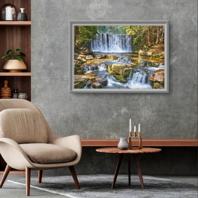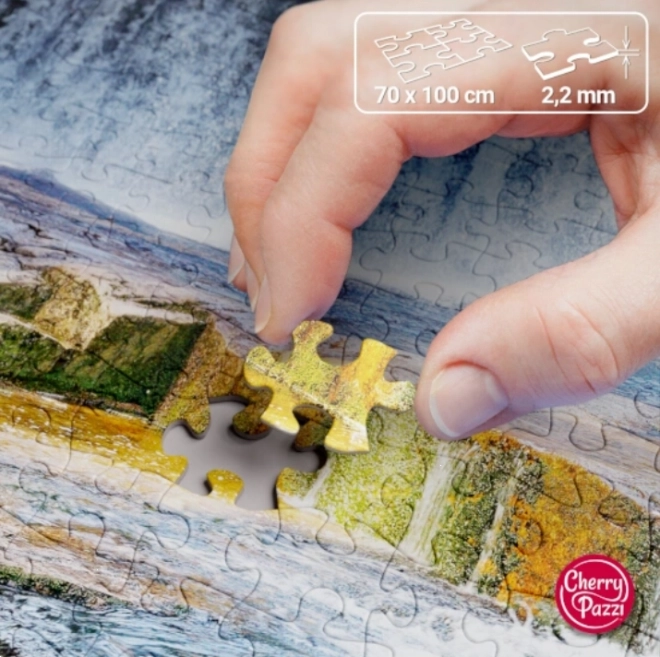 Objavte radosť zo skladania s puzzle CHERRY PAZZI Lesná kaskáda. Veľký formát a detailná tlač motívu prinášajú pohlcujúci zážitok, pri ktorom si oddýchnete a potrénujete sústredenie. Po dokončení vznikne pôsobivý obraz s rozmermi približne 100 × 70 cm, ideálny na zarámovanie.