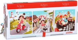 Puzzlika Veselé príbehy 3 v 1 je skvelé zábavné puzzle navrhnuté špeciálne pre malé deti. Každý set obsahuje 50 pevných a odolných dielikov, z ktorých možno poskladať tri samostatné obrázky o rozmere 25 x 25 cm. Každý obrázok má iný počet dielikov: 3x3, 4x4 a 5x5. Výroba puzzle využíva kvalitný viacvrstvový kartón s lesklým povrchom, z ekologicky pestovaného dreva. Puzzle je možné ľahko čistiť vlhkou handričkou.