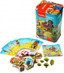 Sada obsahuje 10 papierových predlôh, na základe ktorých je možné postaviť domčeky. Magnetické dieliky z tvrdého kartónu s lesklým povrchom sa dajú ľahko utrieť vlhkou handričkou. Vyrobené z ekologického dreva a určené pre deti od 3 rokov. Vyrobené v Európe.