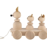 Privítajte nové dobrodružstvá s touto krásne spracovanou drevenou ťahacou hračkou, ideálnou pre malé deti, ktoré si osvojujú prvé kroky. Táto hračka je vyrobená z prírodného dreva a ponúka klasický a jednoduchý vzhľad, ktorý zaujme ako rodičov, tak aj deti.