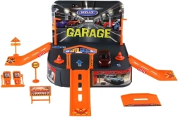 Tento herný set obsahuje skladaciu garáž, tankovaciu pumpu a nájazdy, všetko uspôsobené pre kreatívnu hru a rozvoj detskej predstavivosti. Garáž je navyše vybavená značkami a súčasťou balenia sú samolepky pre vlastnú výzdobu.