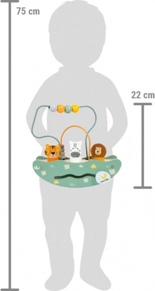 Tento univerzálny motorický labyrint s hojdačkou je ideálnym nástrojom pre deti, ktoré sa chcú učiť a zároveň si hrať. Hračka je vyrobená z robustného dreva a obsahuje dve slučky drôtov s farebnými korálkami. Slučky podporujú tréning jemných motorických zručností a koordináciu oka a ruky u malých prieskumníkov.
