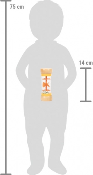 Vychutnajte si upokojujúci zvuk jemného dažďa s dažďovou palicou Small Foot, ktorá rozvíja sluchové aj vizuálne vnímanie detí. Vďaka priehľadnému telu s guľôčkami a rotujúcou vrtuľkou zaujme na prvý pohľad, slúži ako hrkálka aj rytmická hračka a je ľahko uchopiteľná do drobných ručičiek. Ideálna na cesty, vhodná od 6 mesiacov. Výška 14 cm, Ø 5 cm; materiál: drevo a plast.