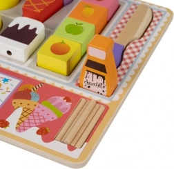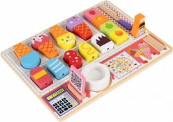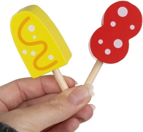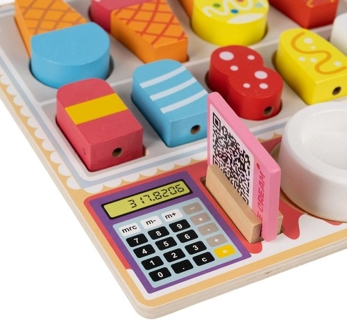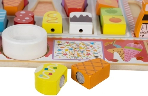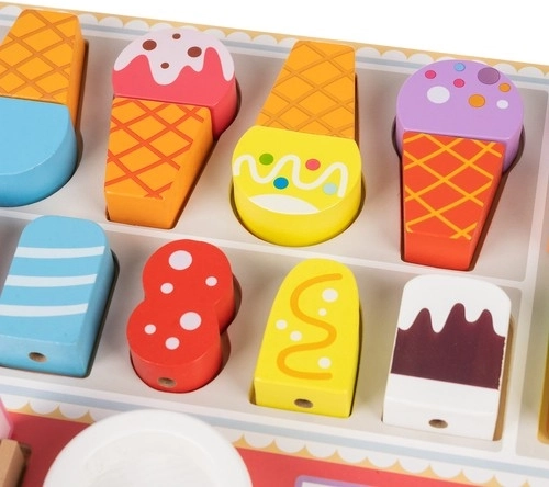 Táto štýlová drevená zmrzlináreň prináša deťom autentickú atmosféru obchodíka so sladkosťami. Vďaka pestrým farbám a mnohým kombináciám zmrzlín sa deti učia rozpoznávať farby, tvary a veľkosti a prirodzene rozvíjajú kognitívne aj senzorické zručnosti. Drevené prvky príjemne padnú do malej rúčky a podporujú správny úchop aj trpezlivosť pri skladaní kopčekov a nanukov.