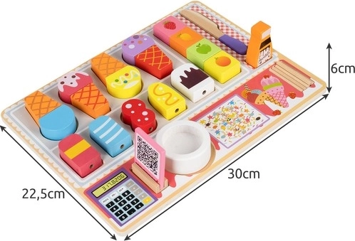 Objavte čarovnú drevenú zmrzlináreň KRUZZEL – farebnú sadu pre malých predavačov a cukrárov. Podporuje kreatívnu hru, rozvoj jemnej motoriky aj učenie farieb a tvarov. Odolné drevené prevedenie je bezpečné a príjemné na dotyk, ideálne pre deti od cca 2 rokov. Kompaktné rozmery a bohaté príslušenstvo zaručia hodiny zábavy.