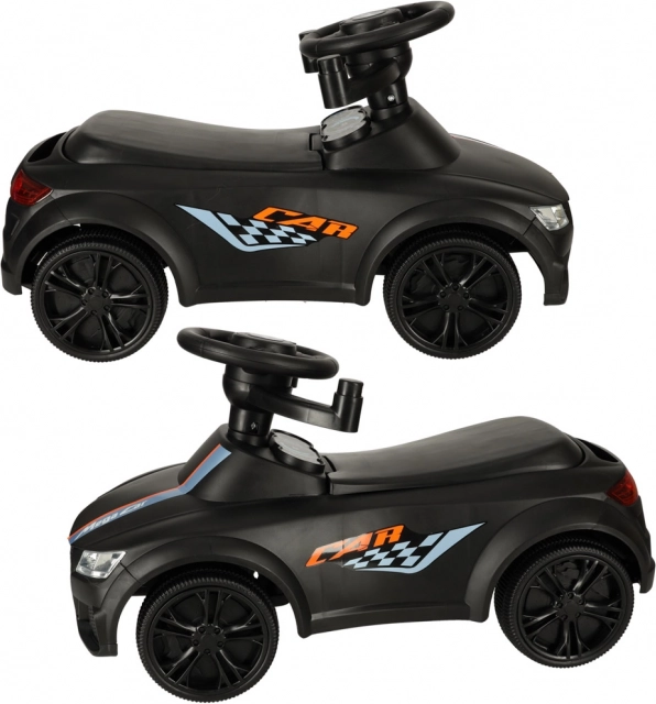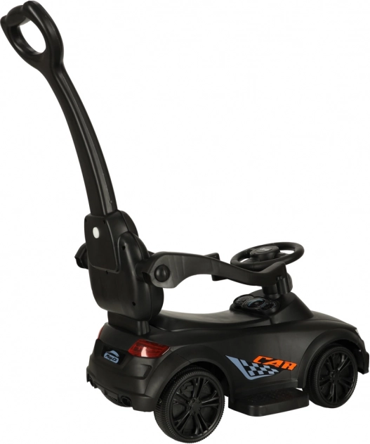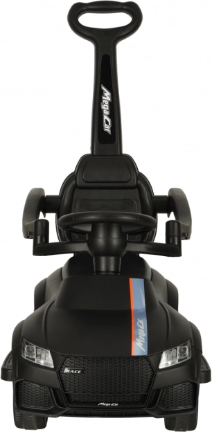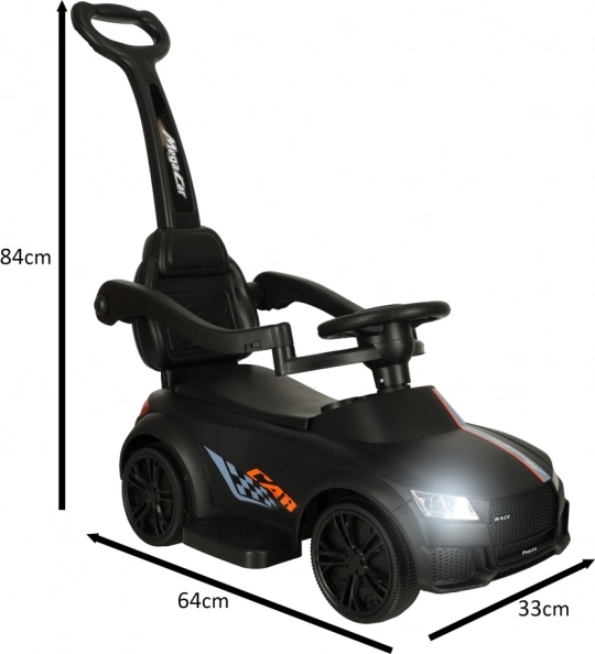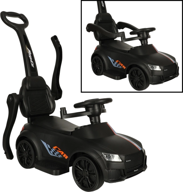 Čierne odrážadlo – tlačiace autíčko 3v1 rastie s dieťaťom od 12 mesiacov: ponúka vodiacu rukoväť pre rodičov, bezpečnostné madlá a opierku na prvé jazdy a možnosť postupnej demontáže pre samostatné odrážanie. Realistické svetelné efekty a zvuky (na 3× AA) premenia každú jazdu na zábavné dobrodružstvo.