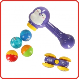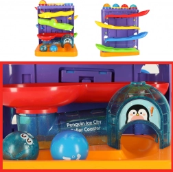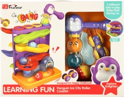 Interaktívna guľôčková dráha 3v1 s kladivkom, tučniak a autíčko