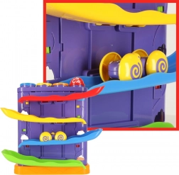 Dráha má dva nezávislé okruhy – guľôčkový a automobilový – takže sa pri nej zabaví jedno aj viac detí naraz. Robustné plastové prevedenie je ľahko umývateľné a pripravené na každodenné hranie.