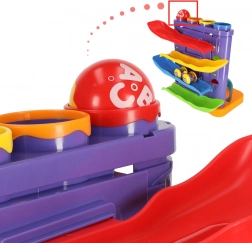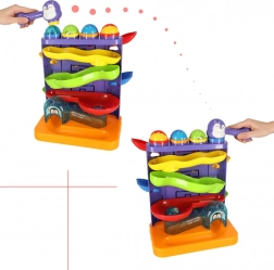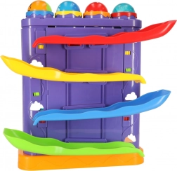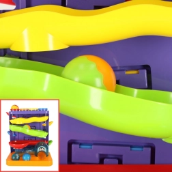 Zábavná a pestrá guľôčková dráha 3v1 pre deti od 3 rokov ponúka dva samostatné okruhy – jeden pre guľôčky a druhý pre autíčko. Vďaka kladivku deti spustia guľôčky z horných otvorov a sledujú ich jazdu nadol. Hra rozvíja jemnú motoriku, koordináciu oko–ruka a prirodzene vysvetľuje princípy gravitácie. Súčasťou je 4× guľôčka, autíčko a kladivko.